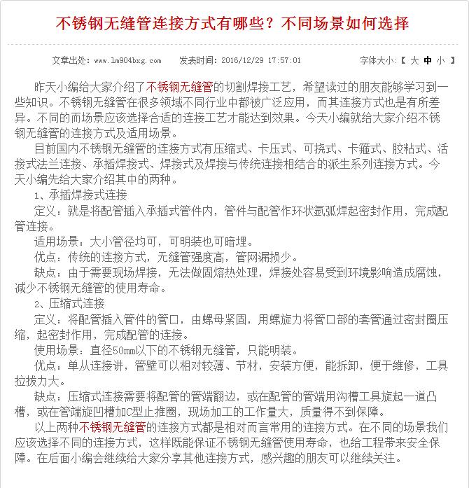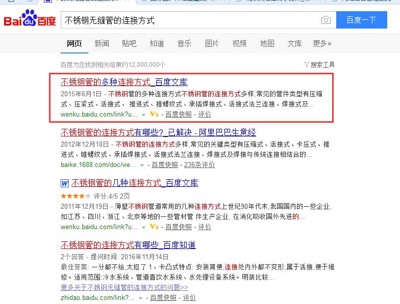 找素材:小编要优化的关键词是不锈钢无缝管,说到这里,有些人可能就会问了,你怎么会想到去搜索不锈钢无缝管的连接方式呢?这可能是个偶然吧,因为小编在找素材的时候,找到一篇无缝管的焊接工艺,这个也是给了小编启发。从另一个角度讲,要优化的主关键词,肯定会有其长尾词,这时候我们就可以借助长尾词来挖掘素材。